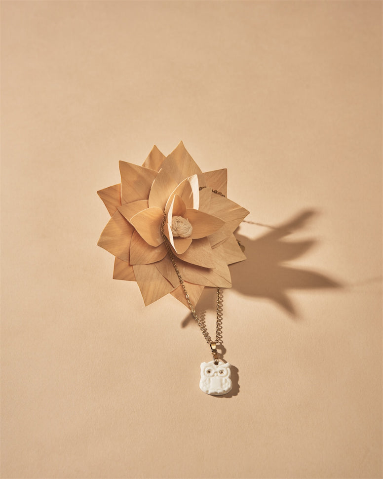 Collier chouette en porcelaine